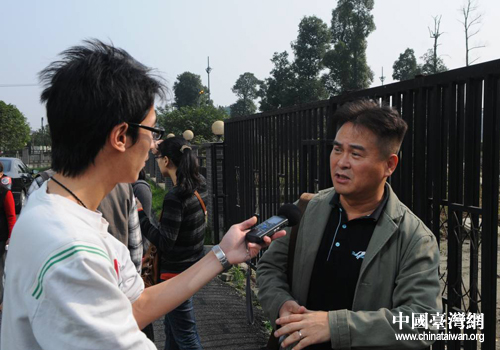 《兩岸愛心地圖》采訪組在都江堰“臺灣愛心家園”采訪成都臺商協會常務副會長唐中柱。(圖片來源:四川省臺辦)
