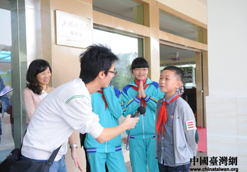 《兩岸愛心地圖》采訪組在都江堰采訪頂新新建小學學生。(圖片來源:四川省臺辦)
