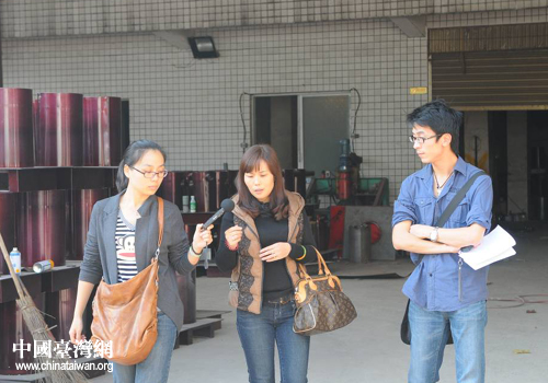 《兩岸愛心地圖》采訪組在瀘州市敘永縣采訪回鄉辦企業的大陸新娘曾維秀。(圖片來源:四川省臺辦)