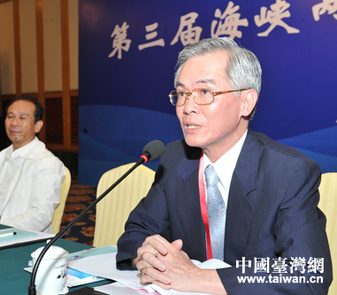 第三屆海峽兩岸紅十字博愛論壇上臺灣紅十字組織副秘書長潘以實發言。(中國臺灣網 發)