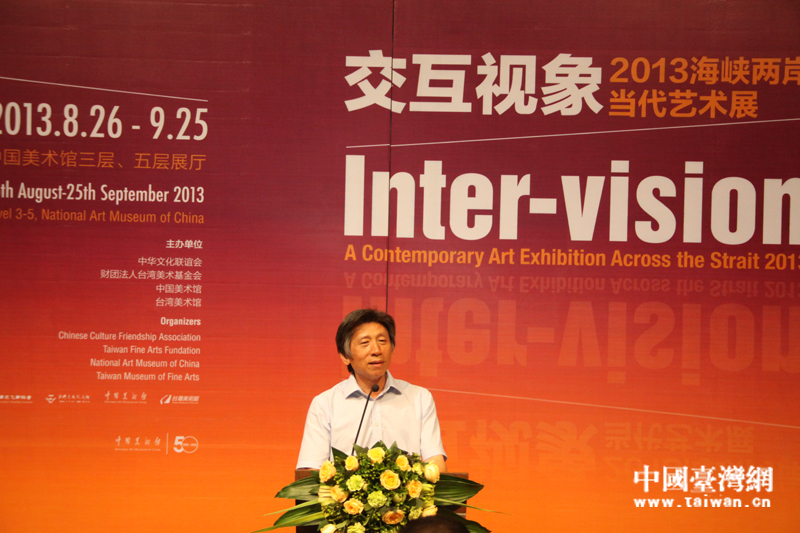由中華文化聯(lián)誼會(huì)、臺(tái)灣美術(shù)基金會(huì)、中國(guó)美術(shù)館、臺(tái)灣美術(shù)館聯(lián)合主辦的“2013海峽兩岸當(dāng)代藝術(shù)展”,8月26日在中國(guó)美術(shù)館開幕,中國(guó)美術(shù)館館長(zhǎng)范迪安在開幕式上致辭。(中國(guó)臺(tái)灣網(wǎng) 蕪?fù)?攝)