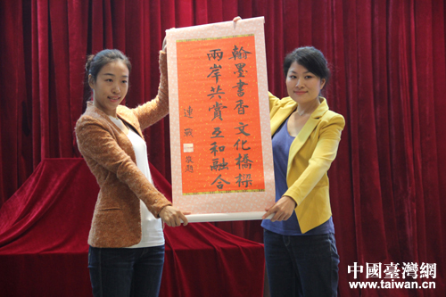 中國國民黨榮譽主席連戰先生專門為本次座談會題詞:翰墨書香 文化橋梁 兩岸共賞 互和融合。(中國臺灣網 王怡然 攝)