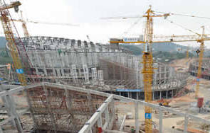 據了解,海峽奧體中心由“一場三館”組成,主體育場呈“海螺”狀,綜合體育館、游泳跳水館和網球館的外形則酷似水滴,造型截取游泳運動員出水瞬間的形態,形象生動,氣勢磅礴。由于海峽奧體中心的鋼構件是三維立體彎扭,部分鋼構件懸挑長70多米,其施工難度是目前國內在建的鋼結構項目中難度最大的。在施工人員的努力下,綜合體育館、網球館和游泳館相繼在10月順利封頂。“鋼筋混凝土結構封頂后,下一步將進行鋼結構吊裝和砌體施工。”工作人員表示,全部場館計劃于2014年底建成。