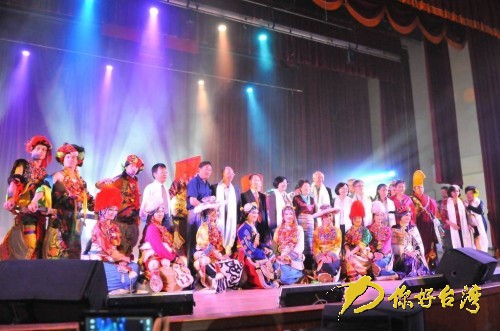 四川民族歌舞赴臺交流團在彰化舉行第四場巡演,圖為演出結束后交流團成員合影。(你好臺灣網 圖)