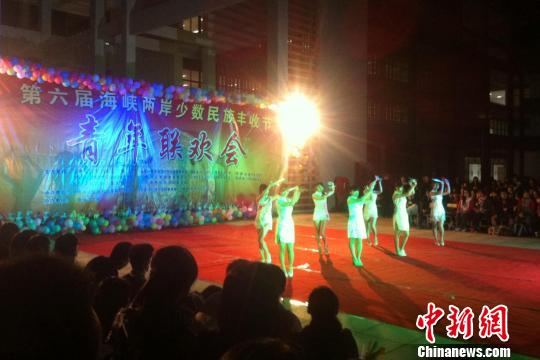 中新網寧德11月16日電 (葉茂)300余名海峽兩岸青少年15日晚相聚于福建寧德市舉行的第六屆海峽兩岸少數民族豐收節青年聯誼會,通過歌聲、舞蹈及互動小游戲等,共敘兩岸同胞情誼、增進兩岸青年文化交流。