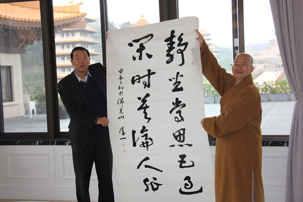 佛光山佛陀紀念館館長如常大師表示,非常感謝北京書畫家的拜訪,佛光山未來將努力為兩岸文化交流搭建新的平臺,深化兩岸同胞的了解和理解,促進和加深京臺文化交流合作貢獻自己的力量。(中國臺灣網記者 李婷婷)
