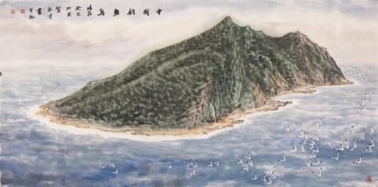 書畫展中展出的作品:中國釣魚島 作者:賀成才