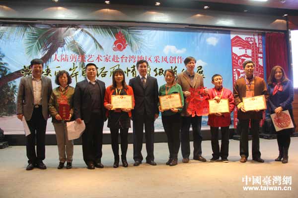 開幕式現場為剪紙藝術家頒發參展證書。(中國臺灣網 馬一娜 攝)