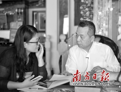 許伯夷先生(右)向中大老師介紹自己收藏的日本投降后歸還的原中山大學圖書。南方日報記者 王輝 攝