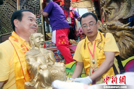 湖南神農(nóng)大帝祖廟圣駕,6月6日至16日首次赴臺灣巡境賜福。圣駕在新北市三重先嗇宮駐蹕安座,受到廟方及信眾盛大歡迎。 黃少華 攝