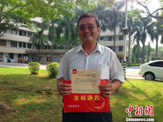 中新網漳州9月16日電 (余丹)午后的陽光灑滿教室,來自臺灣金門、今年65歲的吳啟騰認真地聽著教授講話,這是其作為博士研究生在福建閩南師范大學的第一節(jié)課;野椎念^發(fā),令吳啟騰在學生中顯得與眾不同。