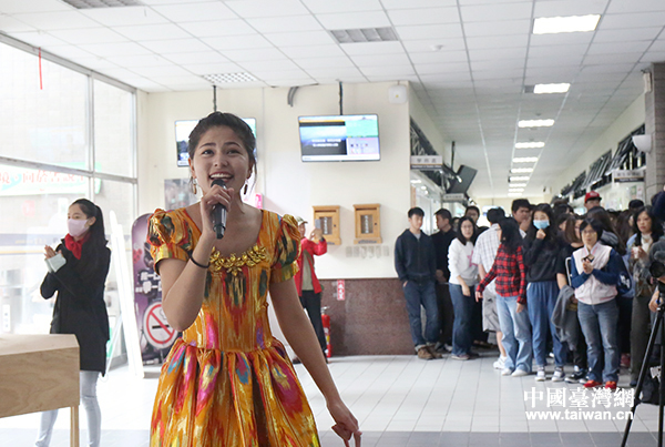 來(lái)自新疆的維吾爾族女孩古麗?孜帕爾演唱新疆民歌《青春舞曲》。(中國(guó)臺(tái)灣網(wǎng) 普燕 攝)