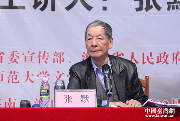2015年“詩意中國”兩岸詩會走進海南師范大學校園,臺灣著名詩人張默為該校同學進行了一場關于詩歌創(chuàng)作及書畫藝術的講座。(中國臺灣網(wǎng) 普燕 攝)