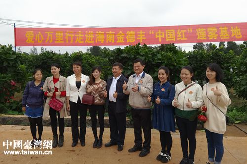 海南省殘聯理事長符永(右五)、黃益豐(右四)等在蓮霧基地合影。