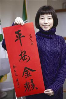 東南網(wǎng)2月3日訊(海峽導(dǎo)報(bào)記者)據(jù)臺灣“聯(lián)合新聞網(wǎng)”2日報(bào)道 民進(jìn)黨媒體創(chuàng)意中心主任李厚慶2日指出,黨中央推出由蔡英文、陳建仁落款的“平安金猴”春聯(lián),取其閩南語諧音“平安真好”。據(jù)了解,這幅字由美女書法家林佳穎題寫。