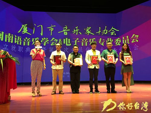 你好臺灣網6月7日廈門消息(記者 呂貝娜)6月6日下午,廈門音協閩南語音樂學會、廈門電子音樂專委會成立大會在廈門市人民劇場舉行。來自福建、港、澳、臺、新加坡、馬來西亞、菲律賓、加拿大等世界各地閩南語音樂及電子音樂名家、歌手、表演藝術家、音樂社會活動家等歡聚一堂,共同見證廈門閩南語音樂和電子音樂領域新力量的誕生。