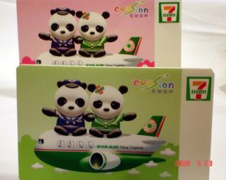 除了熊貓logo商品,長榮也推出“團團圓圓紀念版I-CASH”儲值卡,首款設計共有三色,分別針對長榮航空不同航線產品限量推出。