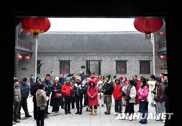 12月9日,臺灣戲曲學院的演員們在參觀侯方域故居。新華社記者 王頌 攝