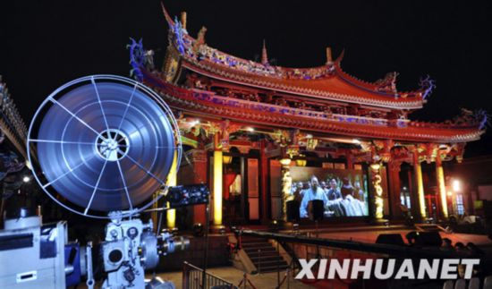 這是2月3日在臺北孔廟拍攝的影片《孔子》臺灣首映會放映現(xiàn)場。