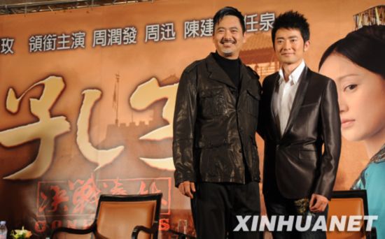 2月3日,周潤發(fā)(左)和任泉出席電影《孔子》劇組在臺北舉行的記者會。