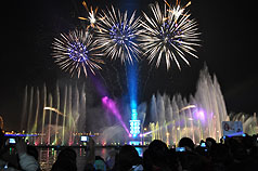 2010高雄燈會藝術節(jié)20日在高雄光榮碼頭絢爛登場,海上主燈“高雄福虎”搭配水舞、雷射與高空煙火的聲光效果,絢爛奪目頗為吸睛,前來觀賞民眾,萬頭鉆動。