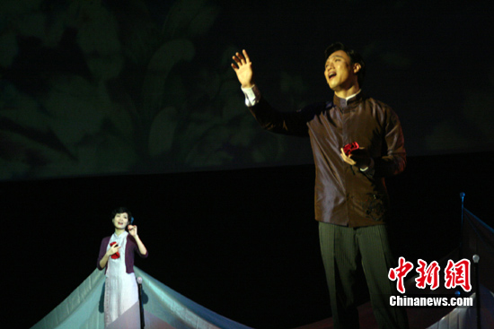 《雙城戀曲》自2008年首演,至今已發展到第四版,音樂劇敘述了2008年夏天臺北女孩裴裴和男孩高楊在上海邂逅,回到各自的城市后只能靠著實時通訊,互訴衷腸,交換關于兩個城市的記憶,而他們的感情卻喚醒了上上一輩在戰亂中分離的愛人之間遙遠的愁緒……述說了兩岸牽扯不斷的相思與愛戀。 (記者 崔佳明)