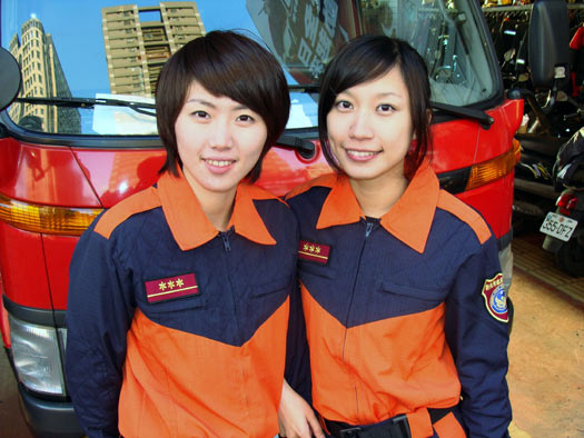 新北市消防月歷一改過去北縣消防月歷偏重猛男的陽(yáng)剛走向,首次加入女消防員,增添柔美及吸睛效果。圖為1月分的柯姿吟(右起)、劉欣宜,二人頗有明星臉。圖片來源:“中央社”