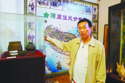 在鼓浪嶼晃巖路上,有一座“百年臺灣”館。近萬件的文物讓游客仿佛進入臺灣歷史的時空隧道。這家博物館的主人就是來自臺灣的洪明章(如圖)。創辦之初,連他自己也沒想到,“百年臺灣”竟然成為大陸第一座臺灣人創辦的私人博物館。