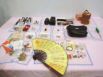 男子黃金生攀爬瓦斯管潛入民宅行竊,圖為他行竊的贓物,多屬容易銷(xiāo)贓的金飾珠寶與現(xiàn)金。