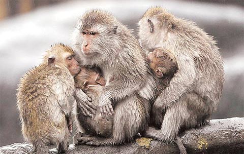 許多動(dòng)物也得強(qiáng)忍低溫。高雄壽山動(dòng)物園的獅王與同伴蜷縮相依、失去威風(fēng),紅毛猩猩裹著軍毯趴趴走,園方還為樹(shù)獺、綠鬣蜥加裝保溫?zé)簟⒎里L(fēng)帆布。臺(tái)北市立動(dòng)物園的猴子則瑟縮依偎、把小猴緊抱懷中取暖。