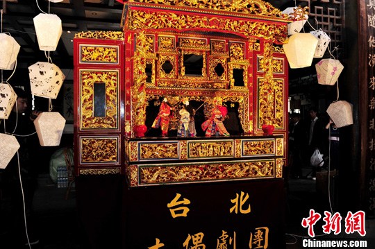為期5天的“兩岸同根 致力為公”川臺大型文化交流活動于4月12日在成都啟動。圖為精彩的布袋戲三國演義表演。中新社發 安源 攝