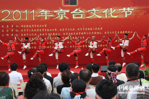 中國臺灣網9月1日北京消息 今日上午,以“交流·融合”為主題的2011年京臺文化節在北京前門的臺灣文化商務區隆重開幕。開幕式上,臺灣少數民族帶來了由音樂和舞蹈組成的精彩演出。(記者 陳葉群)