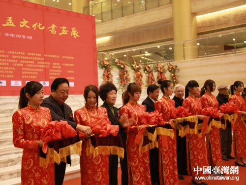 中國(guó)臺(tái)灣網(wǎng)11月18日濟(jì)南消息 海峽兩岸孔孟文化書畫展11月17日上午在山東博物館開幕。山東省政協(xié)副主席、黨組副書記喬延春,省政協(xié)副主席栗甲,省臺(tái)辦副巡視員莊衛(wèi)平,臺(tái)灣中華書院院長(zhǎng)李奇茂,著名書畫大師孫大石等出席開幕式。