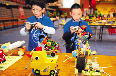 12月11日,“2011少年科技創(chuàng)作競賽——仿生機器人創(chuàng)作暨城市杯邀請賽”在臺灣師范大學舉辦,來自大陸和臺港澳地區(qū)的百余個代表隊參賽,小選手們競相展示自己的科技創(chuàng)新能力,并在比賽中交流和學習其他選手的科技創(chuàng)意。