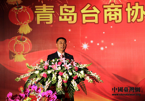 青島市臺灣同胞投資企業協會會長官俊博致辭。(圖片來源:青島市臺辦)