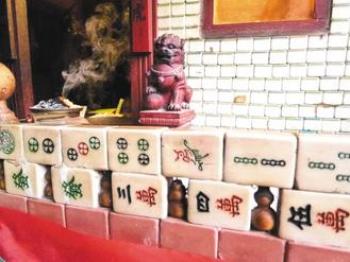 臺南鹽水大眾廟有座迷你“麻將廟”,由廢棄的5000張麻將牌砌成,春節(jié)期間人氣很旺。(圖片來源于:臺灣《聯(lián)合報》)
