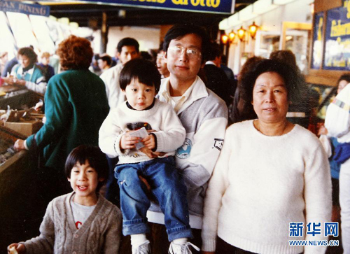 這是1989年,少兒時(shí)的林書(shū)豪(左二)在美國(guó)與家人一起合影的資料照片。 新華社/路透