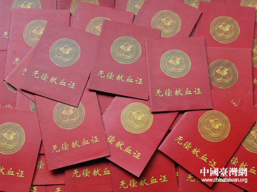 記錄著陳澤人獻血記錄的證書。(葛鳳章 攝)