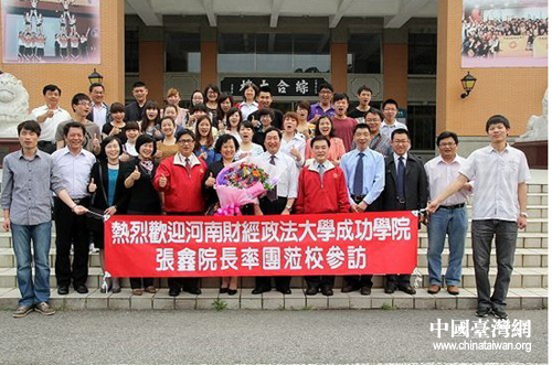 河南財經政法大學成功學院院長張鑫一行到臺灣育達商業科技大學參訪。(圖片來源:鄭州臺辦)