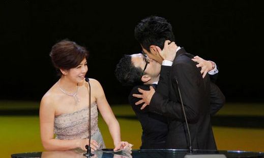 九把刀激吻柯震東,陳妍希一旁看傻眼。(圖片來自網絡)