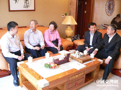 中國臺灣網4月23日臨沂消息 4月22日,臺灣昆山科技大學董事長李士崇先生攜家眷一行8人回山東省沂南縣銅井鎮(zhèn)馬泉莊村探親。臨沂統(tǒng)戰(zhàn)部副部長、臺辦主任解紅日,沂南縣副縣長張云超,沂南縣政協副主席苗德文等領導熱情接待。