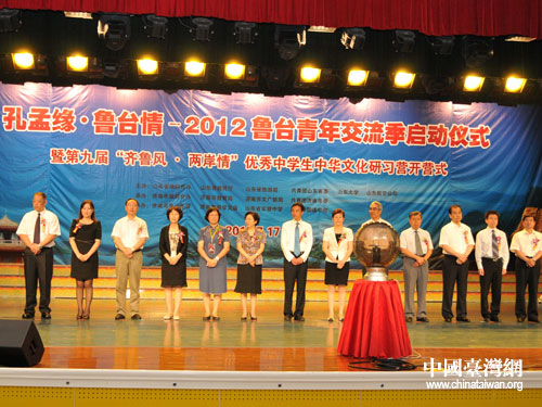 中國臺灣網(wǎng)7月17日濟南消息 7月17日上午,“孔孟緣·魯臺情—2012魯臺青年交流季啟動儀式暨第九屆“齊魯風·兩岸情”優(yōu)秀中學生中華文化研習營開營式”在濟南市青少年宮舉行。國臺辦交流局副局長嚴中洲、山東省臺辦主任張雪燕、濟南市委副書記雷杰出席活動,省教育廳、省旅游局、團省委、山東航空公司、山東大學、山東中醫(yī)藥大學和濟南市臺辦等10家主辦單位負責人參加了啟動儀式和開營式。