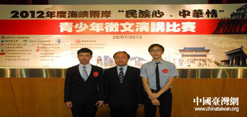 中國臺灣網(wǎng)8月3日武漢消息 2012年7月27日—30日,由澳門辛亥·黃埔協(xié)進(jìn)會主辦,武漢海峽兩岸交流促進(jìn)會、臺灣中華四海同心會、南京中山陵園管理局等17家單位協(xié)辦的第6屆海峽兩岸“民族心、中華情”青少年征文演講比賽總決賽在澳舉行。市臺辦主任、武漢海峽兩岸交流促進(jìn)會會長金偉成帶隊參加活動。