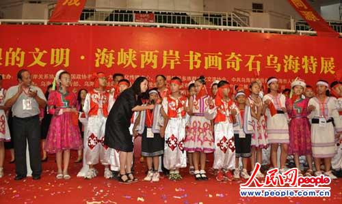 11日,以“同根的文明”為主題的海峽兩岸書畫奇石大型特展和體現(xiàn)兩岸“同根的文明”的國寶藝術(shù)品《富春山居圖》電視電影拍攝的啟動儀式在“書法之城”烏海開展,海峽兩岸關(guān)系協(xié)會副會長王富卿,內(nèi)蒙古自治區(qū)黨委統(tǒng)戰(zhàn)部副部長劉麗華,著名書法藝術(shù)家、中國書協(xié)顧問劉藝、全國政協(xié)常委、中國書協(xié)副主席蘇士澍,中國電影表演藝術(shù)學(xué)會會長、中國書法家協(xié)會會員唐國強,全國政協(xié)教科文衛(wèi)委員會副主任、中國檢察官文聯(lián)主席張耕,臺灣地區(qū)少數(shù)民族民意代表、臺灣原住民多族群文化交流協(xié)會創(chuàng)會會長高金素梅等兩岸各界人士及相關(guān)領(lǐng)導(dǎo)出席開幕式。