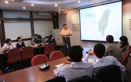 臺南大學張伯宇主任為大陸青年赴臺交流團介紹臺灣地理情況(中國臺灣網 王文英 攝)