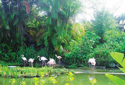 白榕園原是一樹成林,這棵樹是臺(tái)灣最大的榕樹,氣根倒長,生出三四百株枝桿,遮天蔽日。因?yàn)榘组艌@地處一個(gè)林業(yè)試驗(yàn)所內(nèi),平常不對(duì)外開放,孕育了豐富的生態(tài)景觀,蝴蝶、飛鳥、奇花異草渲染出熱帶叢林的原始?xì)庀ⅰ!渡倌昱伞返拿佬g(shù)設(shè)計(jì)葛羅·普曼說:“李安知道墾丁有一個(gè)榕樹保護(hù)園,他就帶我們?nèi)タ矗莻(gè)保護(hù)園成了神秘浮島的靈感來源。”