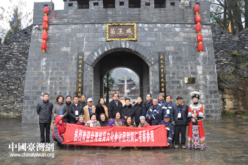 中國臺灣網(wǎng)12月31日銅仁消息 日前,以臺灣少數(shù)名族交流協(xié)會會長王清堅先生為團長的少數(shù)民族文化參訪團,到貴州松桃苗王城交流考察,受到當?shù)孛缱逋臒崃覛g迎。