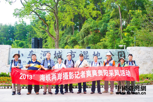 中國臺灣網8月28日貴陽消息 8月8日,參加“2013’海峽兩岸攝影記者爽爽貴陽采風活動”的攝影記者們來到貴陽市小車河城市濕地公園,用手中的像機全程記錄了“2013中國·貴州‘九黎十八寨’民族博覽會”啟動儀式。