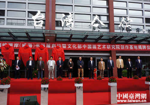中國臺灣網10月22日威海消息 10月21日,海峽兩岸(威海)書畫展啟動暨文化部中國畫藝術研究院創(chuàng)作基地揭牌儀式在威海臺灣會館舉行。威海市委副書記趙熙殿,《兩岸關系》雜志社法人代表、主持工作副社長鐘河林,文化部中國畫藝術研究院院長、中國現(xiàn)代美術研究院院長、清華美院書畫高研班張津誠展沖刺書畫綜合班導師張津誠等出席啟動儀式,為基地揭牌,并參觀了書畫展和臺灣會館。威海市臺辦主任于連波主持儀式。
