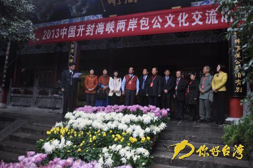 你好臺灣網11月4日消息 11月1日上午,2013中國開封海峽兩岸包公文化交流活動在開封市包公祠景區拉開帷幕。河南省人民政府臺灣事務辦公室主任王海鷹,中共開封市委常委、統戰部部長、開封新區黨工委書記焦躍進,臺灣海峽兩岸法學交流協會理事長、向陽公益基金會董事長廖正豪,包公在臺后人代表、新人類文明文教基金會董事長包忠詒等領導、嘉賓和140余名臺灣專家學者出席開幕式。開封市人大常委會副主任曹法英主持開幕式。